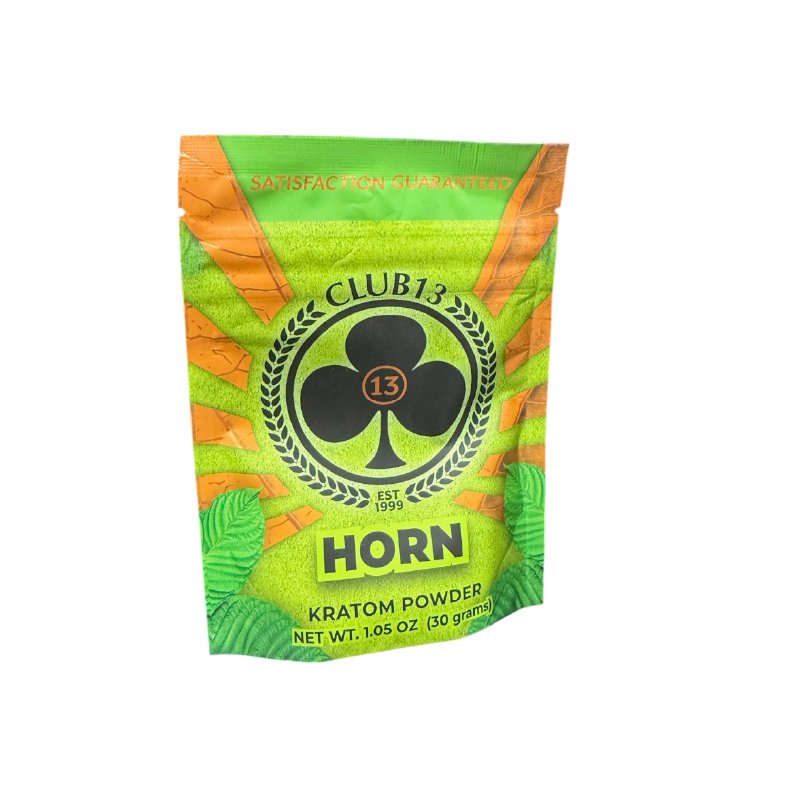 Club13’s Horn Blend Kratom Powder is a carefully crafted selection designed for kratom enthusiasts seeking a high-quality, consistent experience. This expertly blended powder combines select strains to deliver smooth, reliable results, suitable for both new users and seasoned kratom connoisseurs.