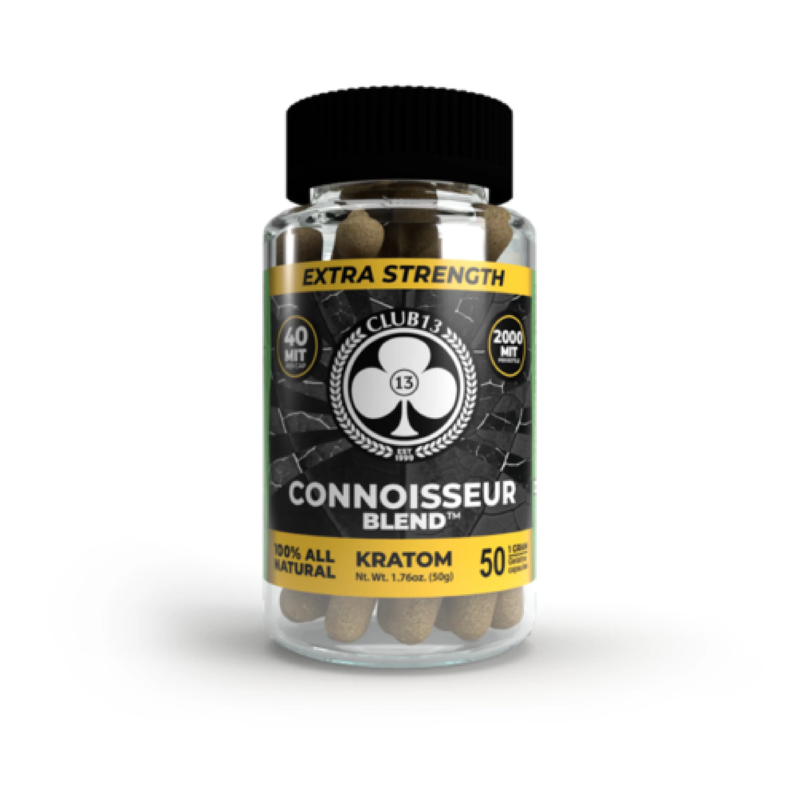Experience the full spectrum of premium Kratom with Club13 Connoisseur Blend Extra Strength Capsules – 50ct. Designed for Kratom enthusiasts, these capsules deliver a well-rounded blend of energizing, relaxing, and euphoric effects. Each capsule is packed with high-quality Kratom powder and an enhanced Mitragynine (Mit) content for a potent, reliable experience.