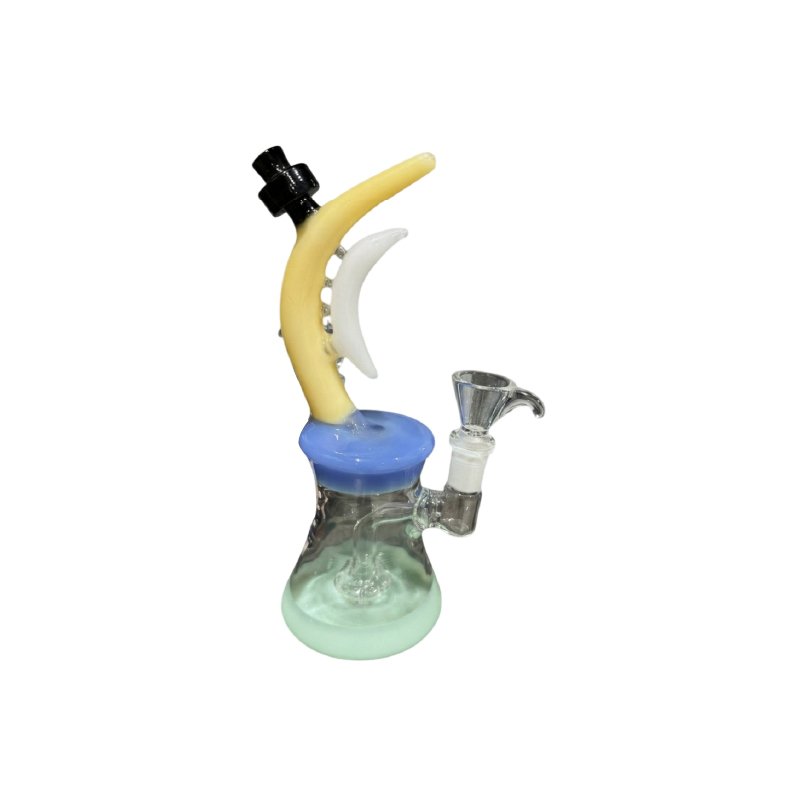 The centerpiece of the set is a 6.3-inch crescent moon–themed dab rig, expertly crafted from high-quality borosilicate glass and accented with vibrant American colored rod details. Its compact size makes it easy to transport while still providing smooth, effective filtration.