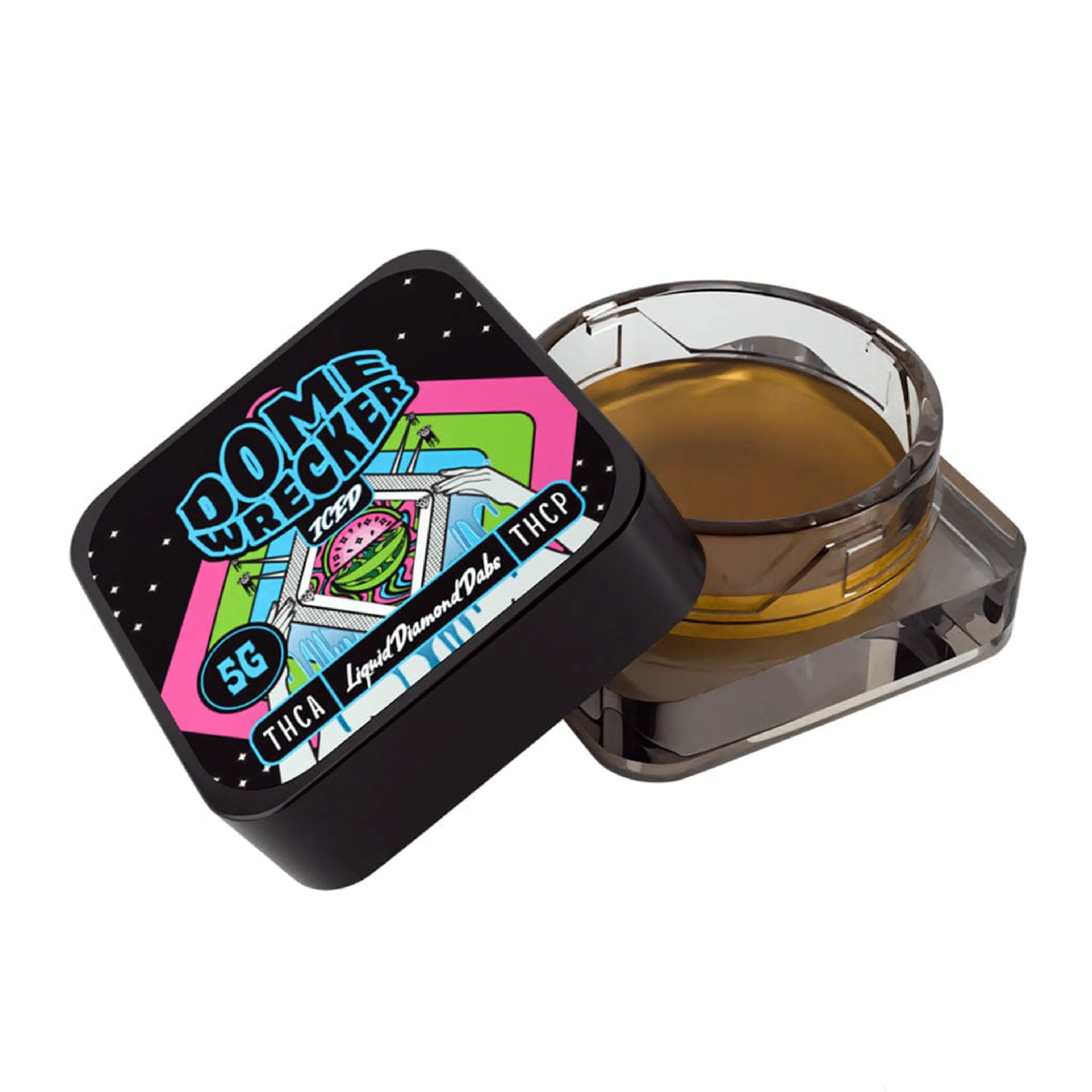 Experience the pinnacle of hemp-derived concentrates with Dome Wrecker THCa + THC-P Liquid Diamond Dabs. Each 5-gram jar is packed with ultra-refined THCa and THC-P distillate infused with cannabis-derived iced terpenes, delivering a smooth, flavorful, and potent experience.