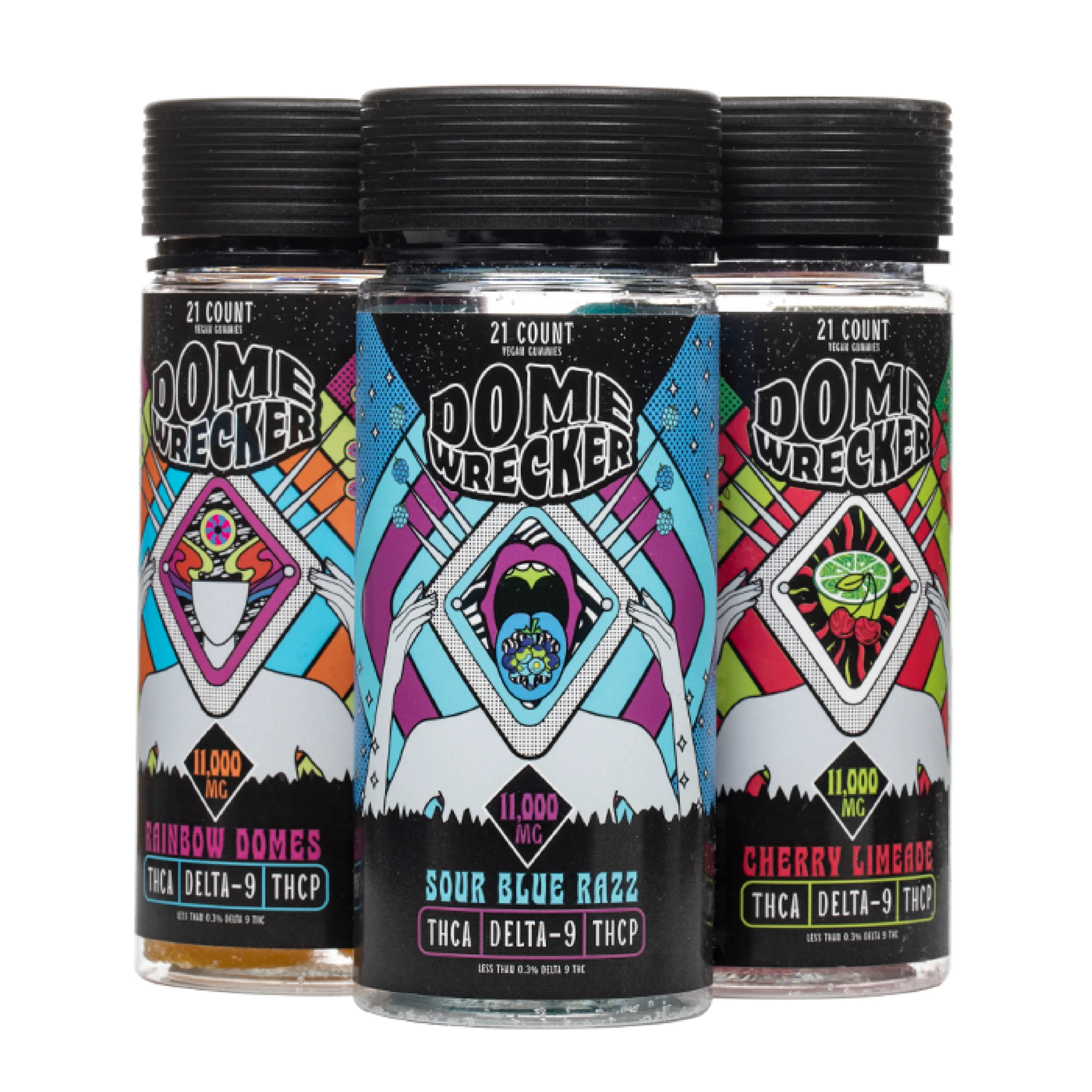 Dome Wrecker THC Gummies are crafted for those who want a bold, high-potency edible experience. Formulated with THCa, Delta 9 THC, and THCp, these gummies deliver intense effects with smooth, flavorful enjoyment. Each gummy contains 525mg of THC, with a total of 11,000mg per jar, making this one of the most powerful edible options available.