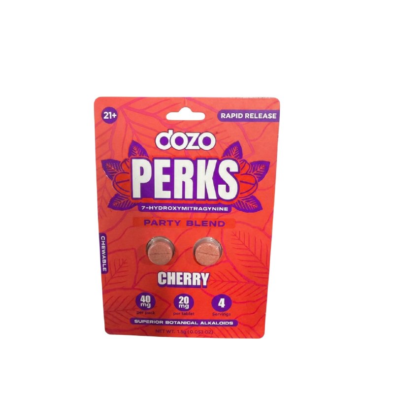 Each pack contains two tablets, with 20mg of 7-Hydroxymitragynine per tablet, providing a controlled and potent experience every time. The Dozo Perks Party Blend is ideal for moments when you want to enhance your mood and enjoy a more dynamic, social-friendly experience.