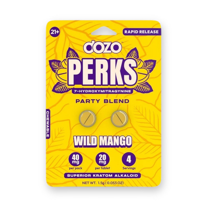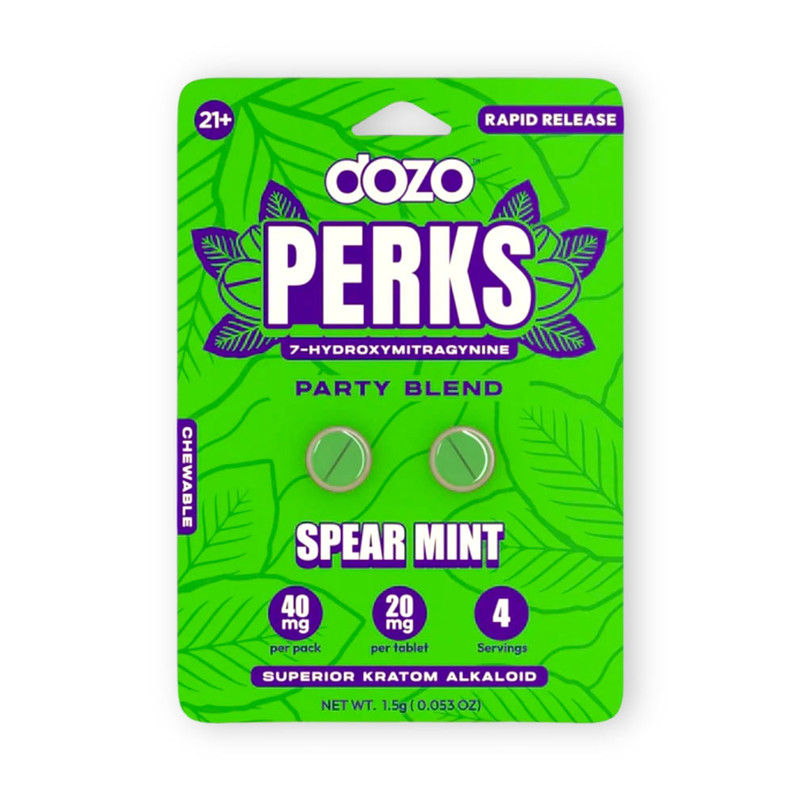 Dozo Perks 7-Hydroxymitragynine Tablets are premium kratom extract tablets crafted for users seeking a powerful, fast-acting, and convenient experience. Each tablet contains 20mg of 7-Hydroxymitragynine, one of kratom’s most potent alkaloids, delivering consistent and reliable effects in an easy-to-use tablet form. These tablets come in multiple Party and Mellow blend flavor options, making them ideal for both energetic and relaxing experiences.