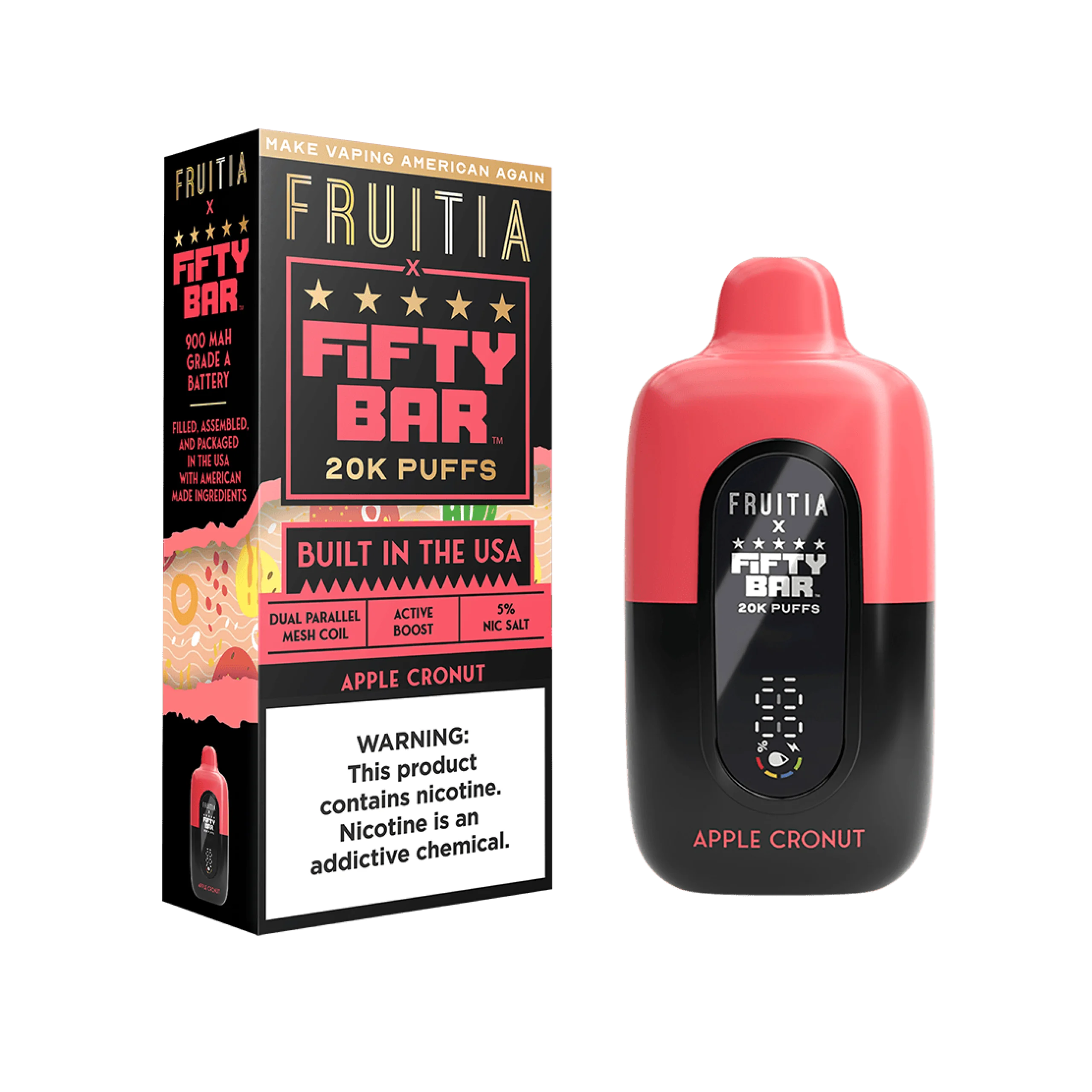 The Fifty Bar Black Apple Cronut 20K Puff Disposable Vape by FRUITIA x Fifty Bar delivers a rich dessert-inspired vaping experience with its Apple Cronut flavor. This unique blend combines sweet baked apple notes with buttery pastry undertones, creating a smooth, indulgent vape that’s perfect for dessert-flavor lovers.