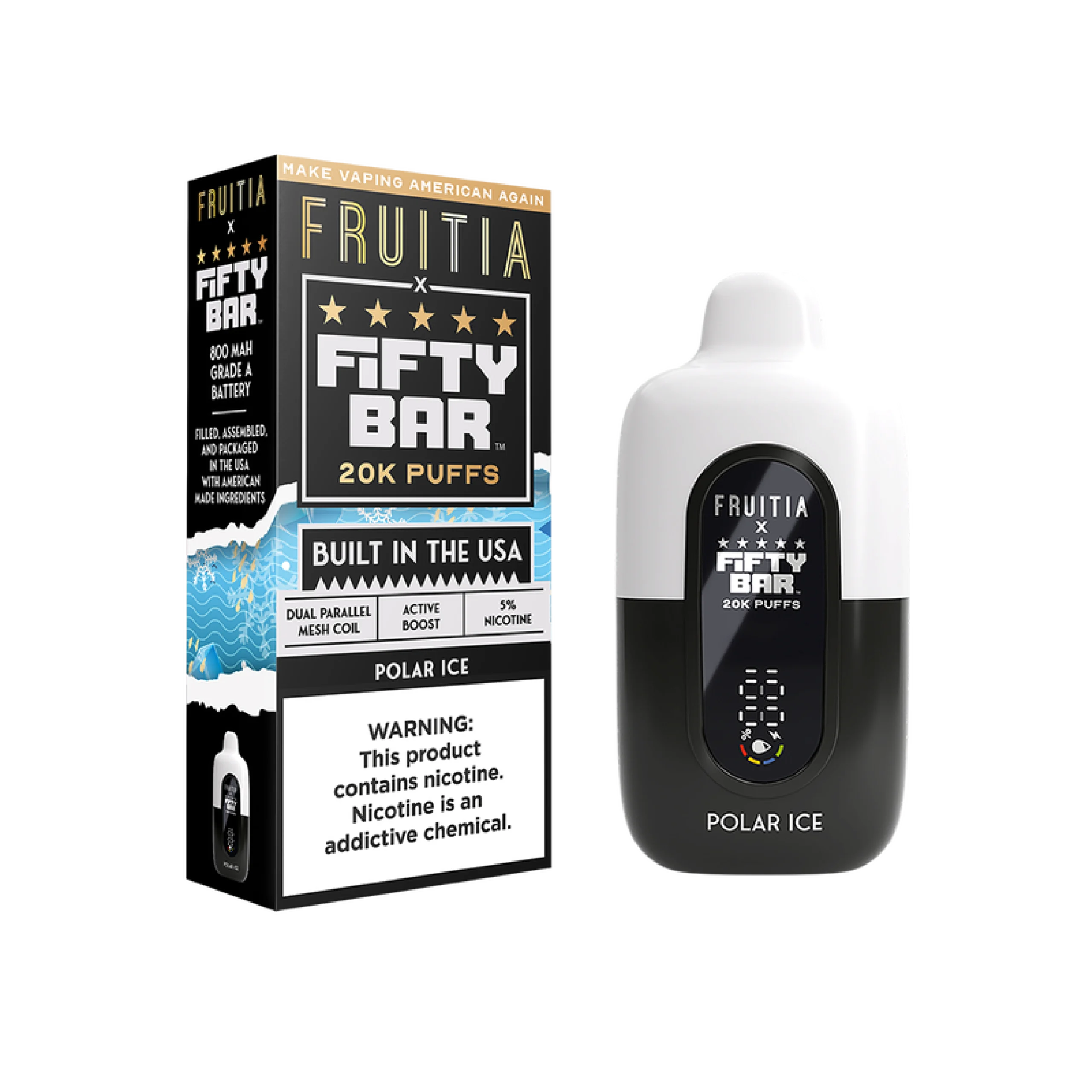 The Fifty Bar x Fruitia Polar Ice 20K Puff Disposable Vape delivers a powerful blast of icy menthol freshness designed to awaken your senses with every inhale. Crafted through the FRUITIA x Fifty Bar collaboration, this device offers a crisp, cool, and revitalizing vaping experience for users who crave extreme freshness and smooth vapor performance.