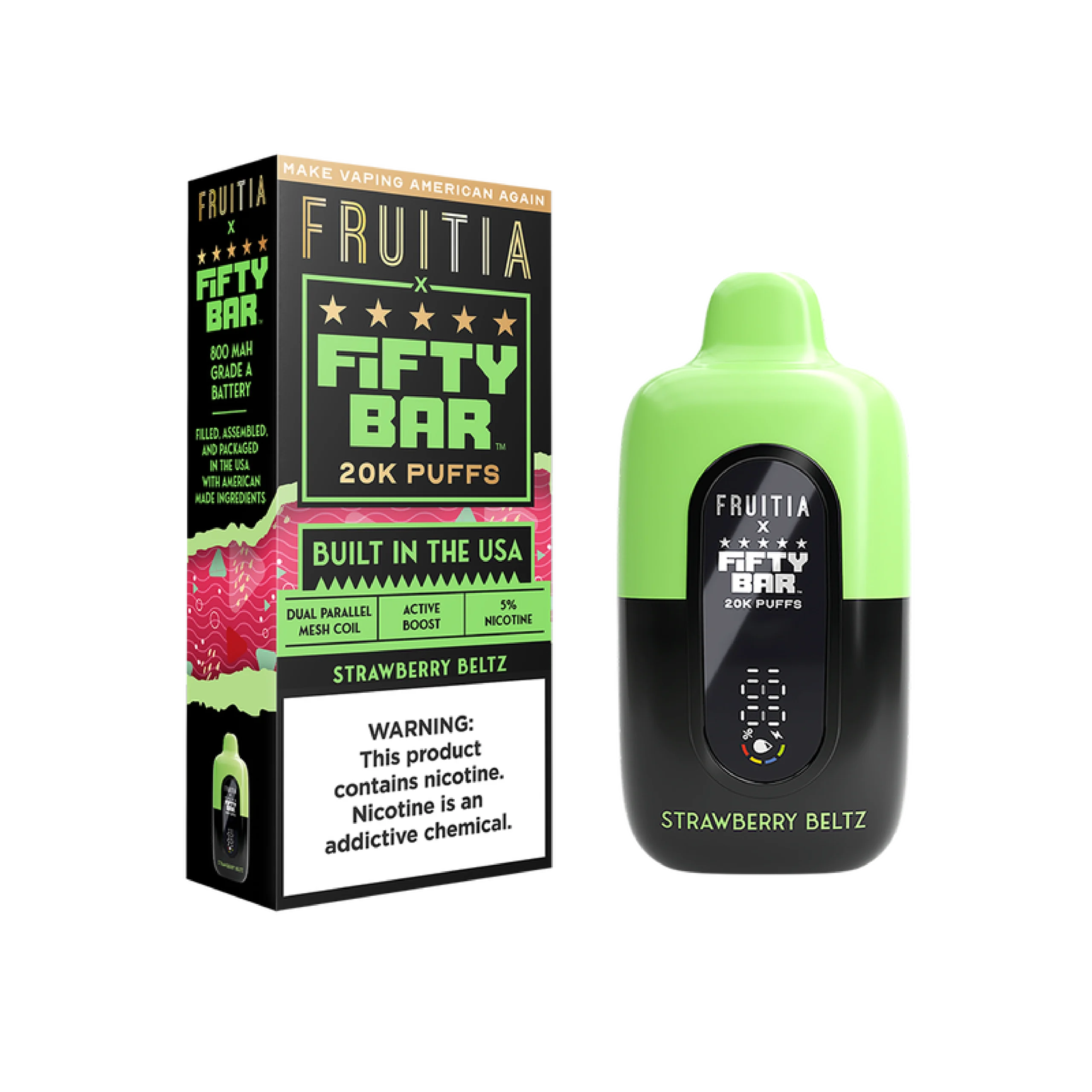 Delight in the sweet and tangy joy of Strawberry Beltz with the Fifty Bar x Fruitia 20K Puff Disposable Vape. Inspired by classic strawberry candy belts, this flavor combines sugary sweetness with a playful tart twist, bringing a nostalgic candy experience to every puff.