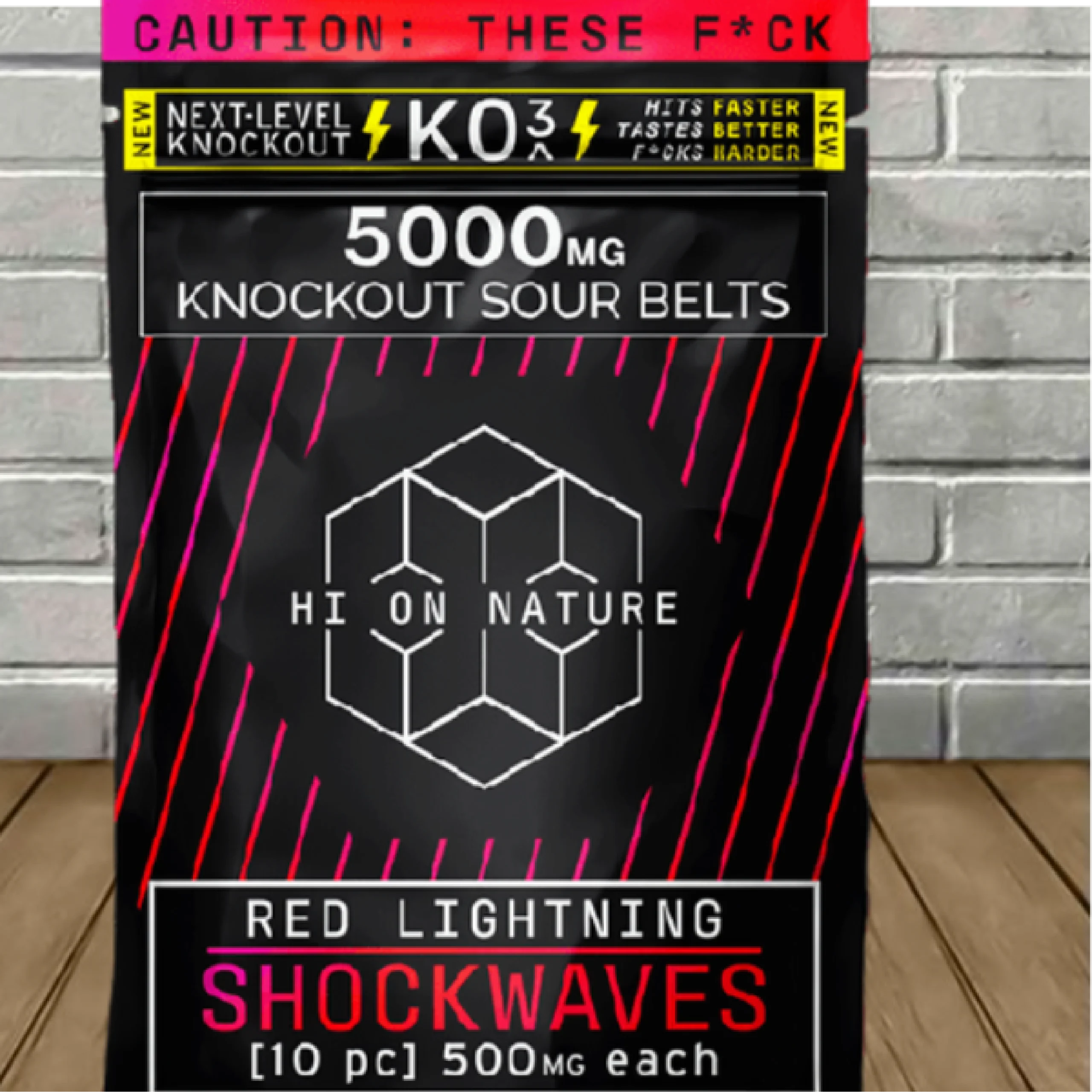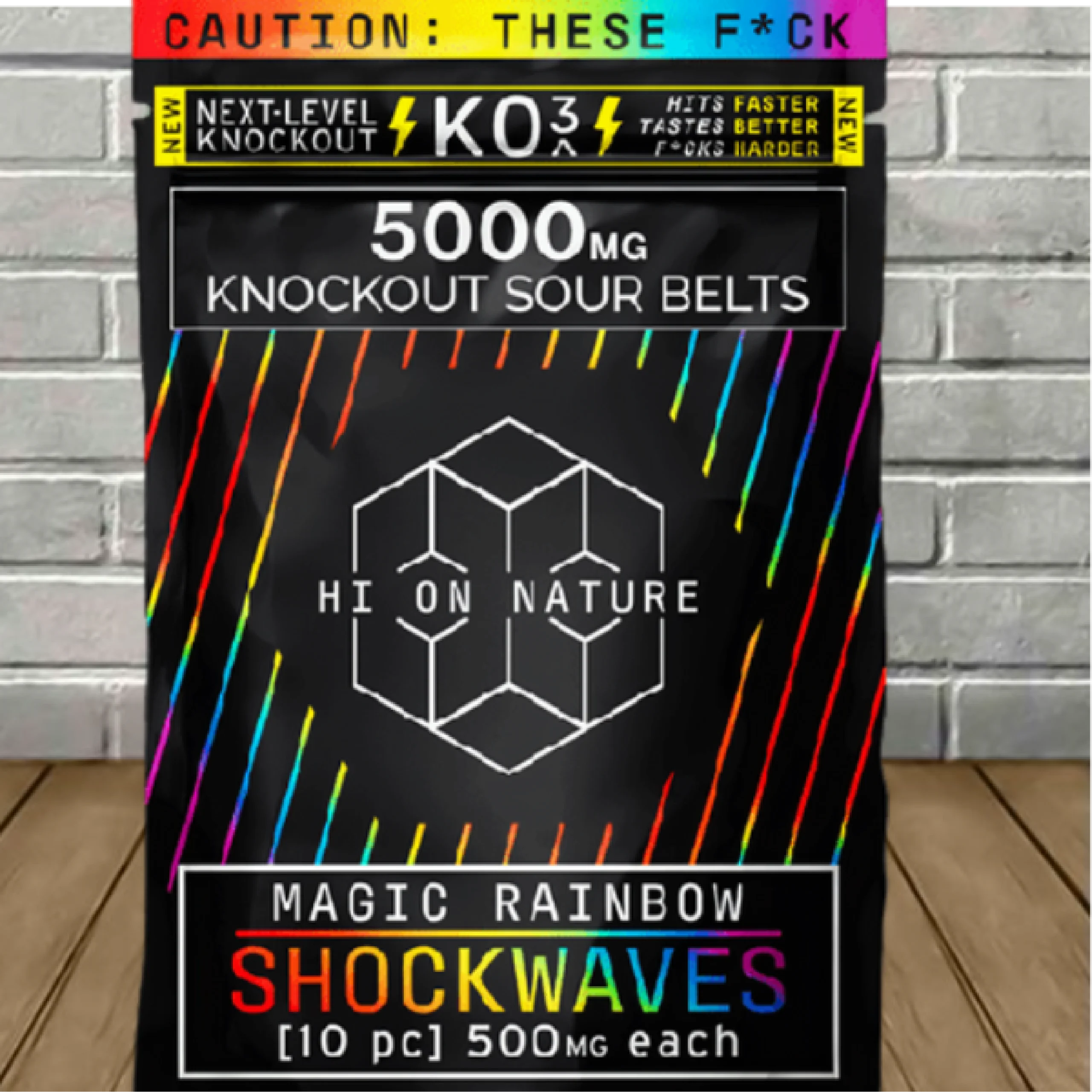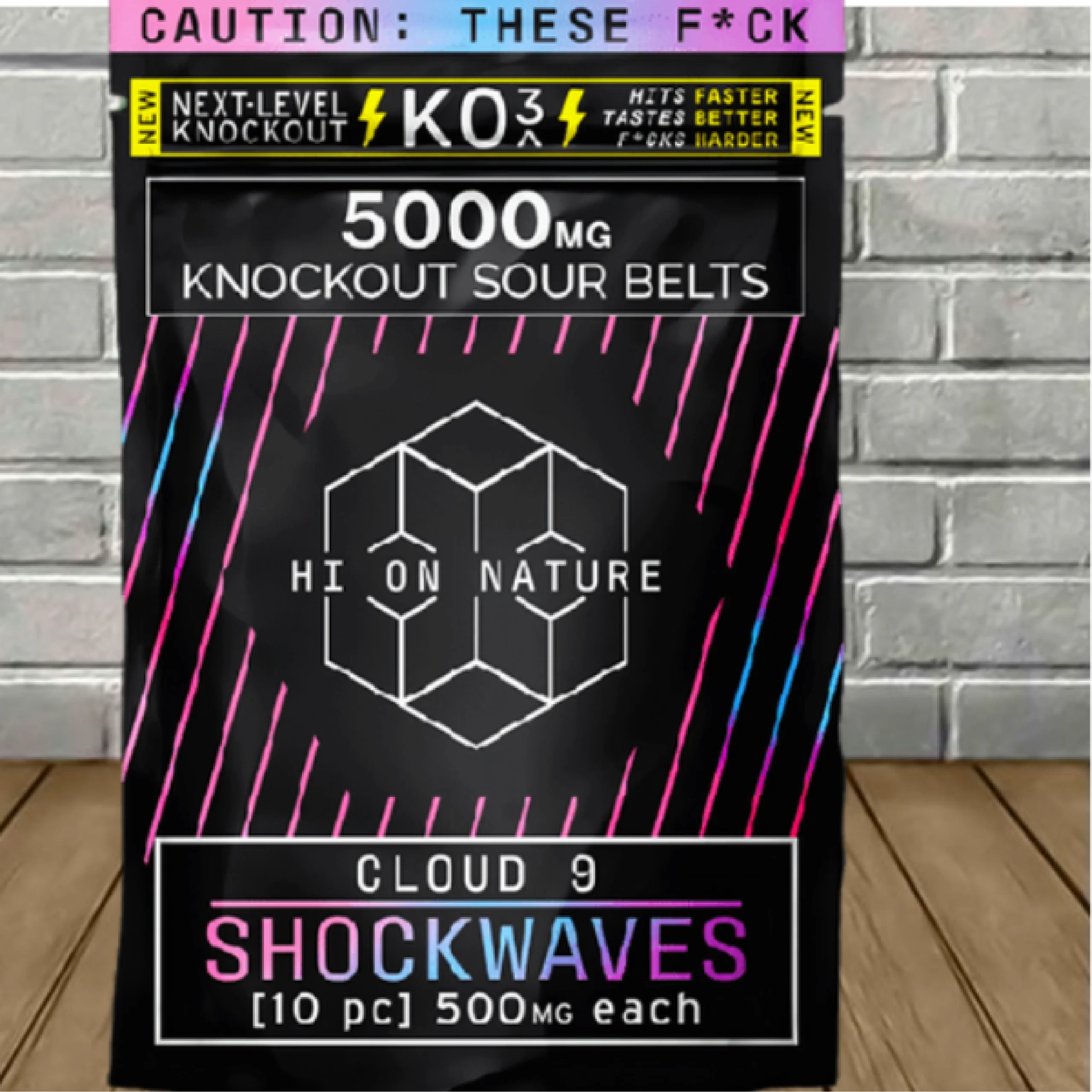 Hi On Nature Next Level KO3 Shockwaves 5000mg deliver a potent and high-quality cannabinoid experience in every sour belt gummy. Each gummy is infused with 500mg of a knockout blend including THCP, HHCO, HHC, and Delta 8 THC, with additional CB+ activators such as CBC and CBDV for fast-acting effects.