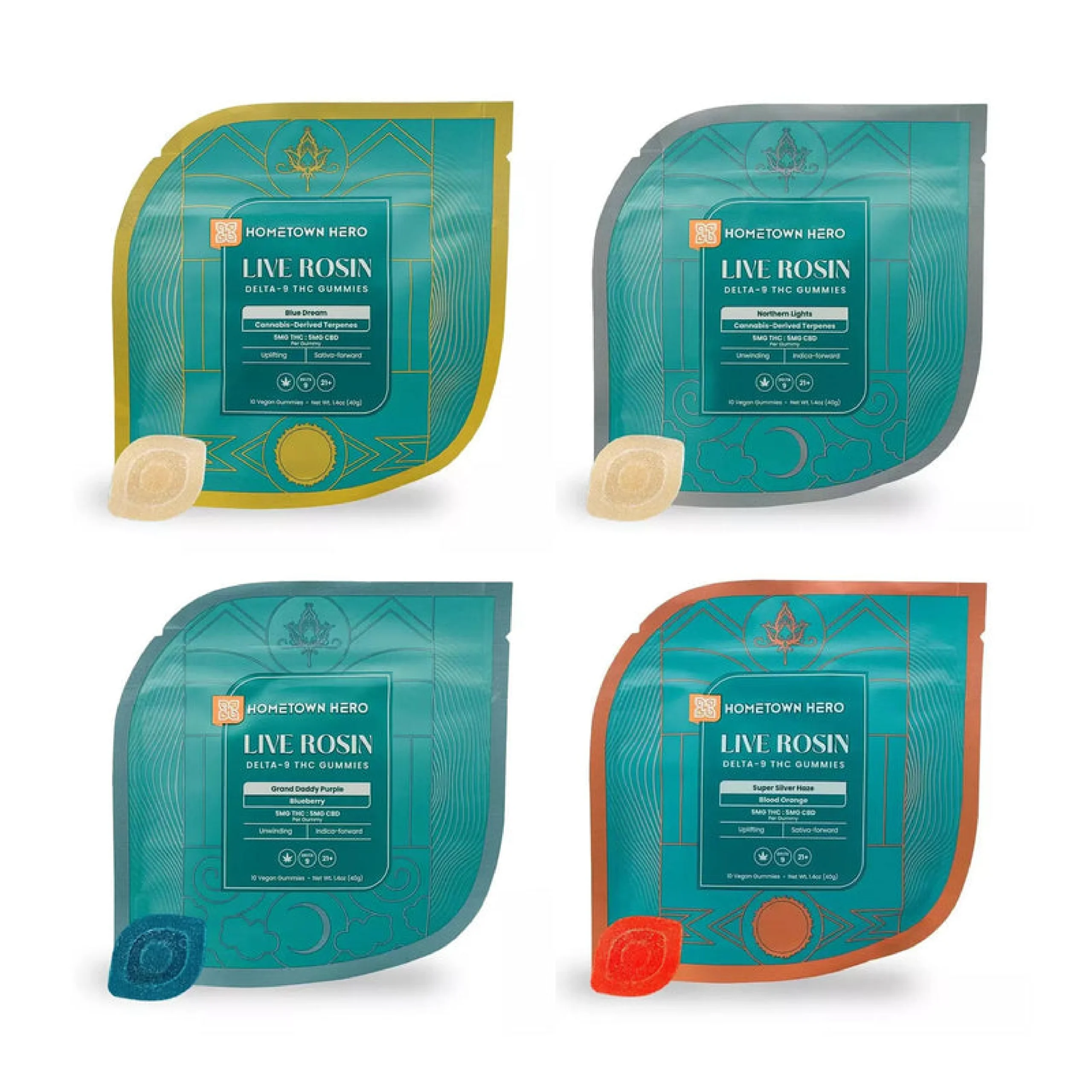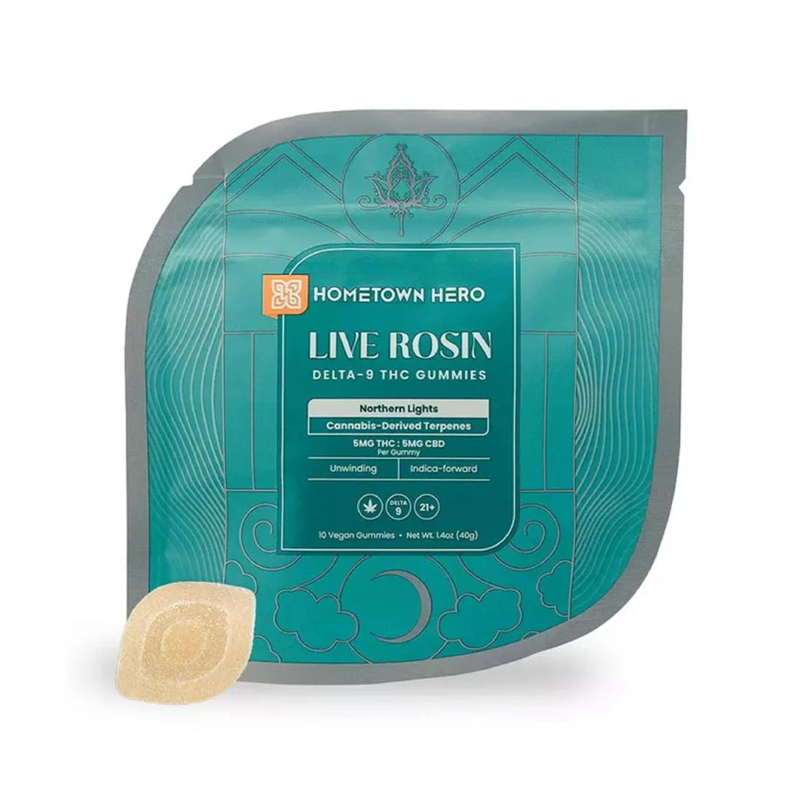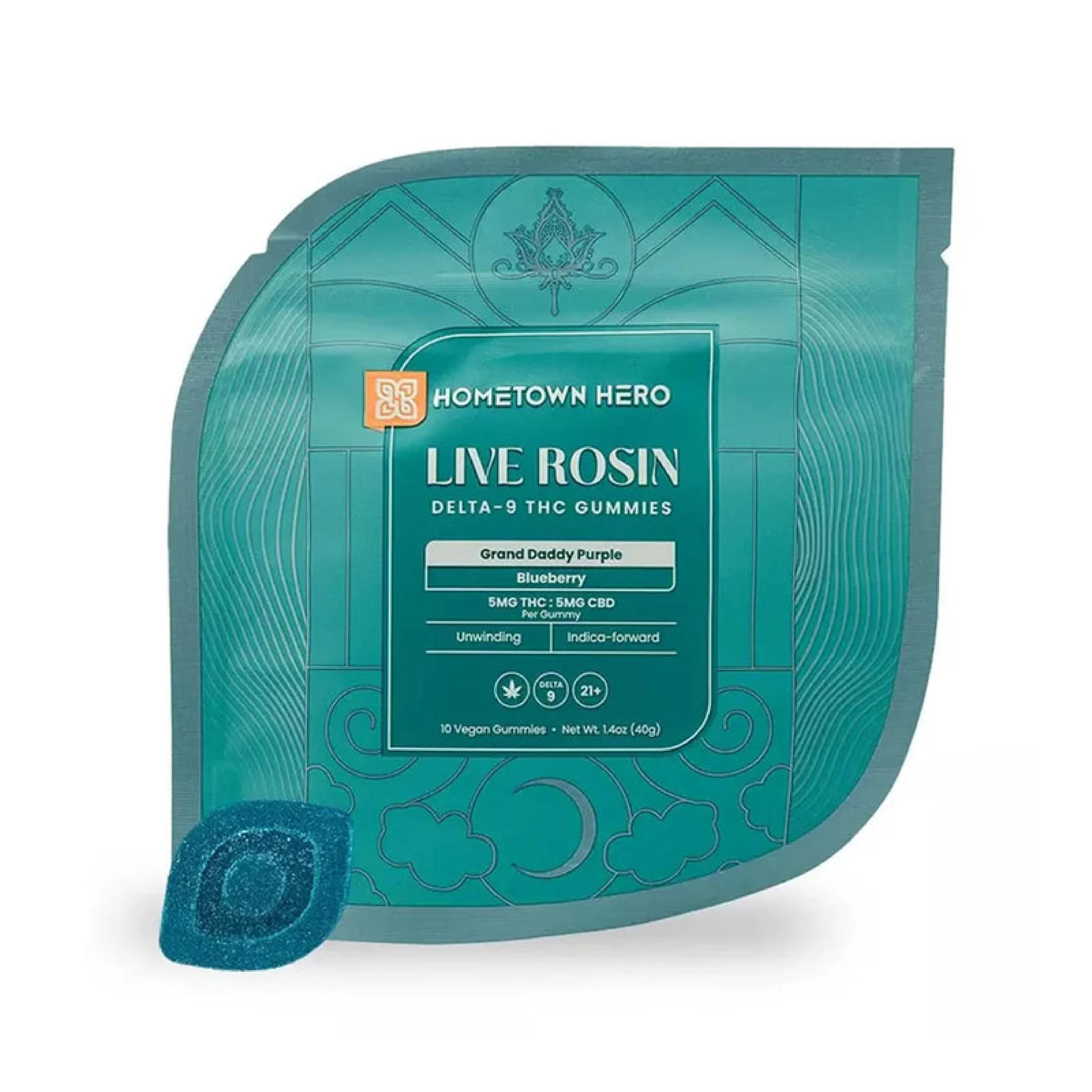 Hometown Hero Live Rosin Gummies | 10ct Bag | 5mg Delta-9 THC + 5mg CBD + Live Rosin