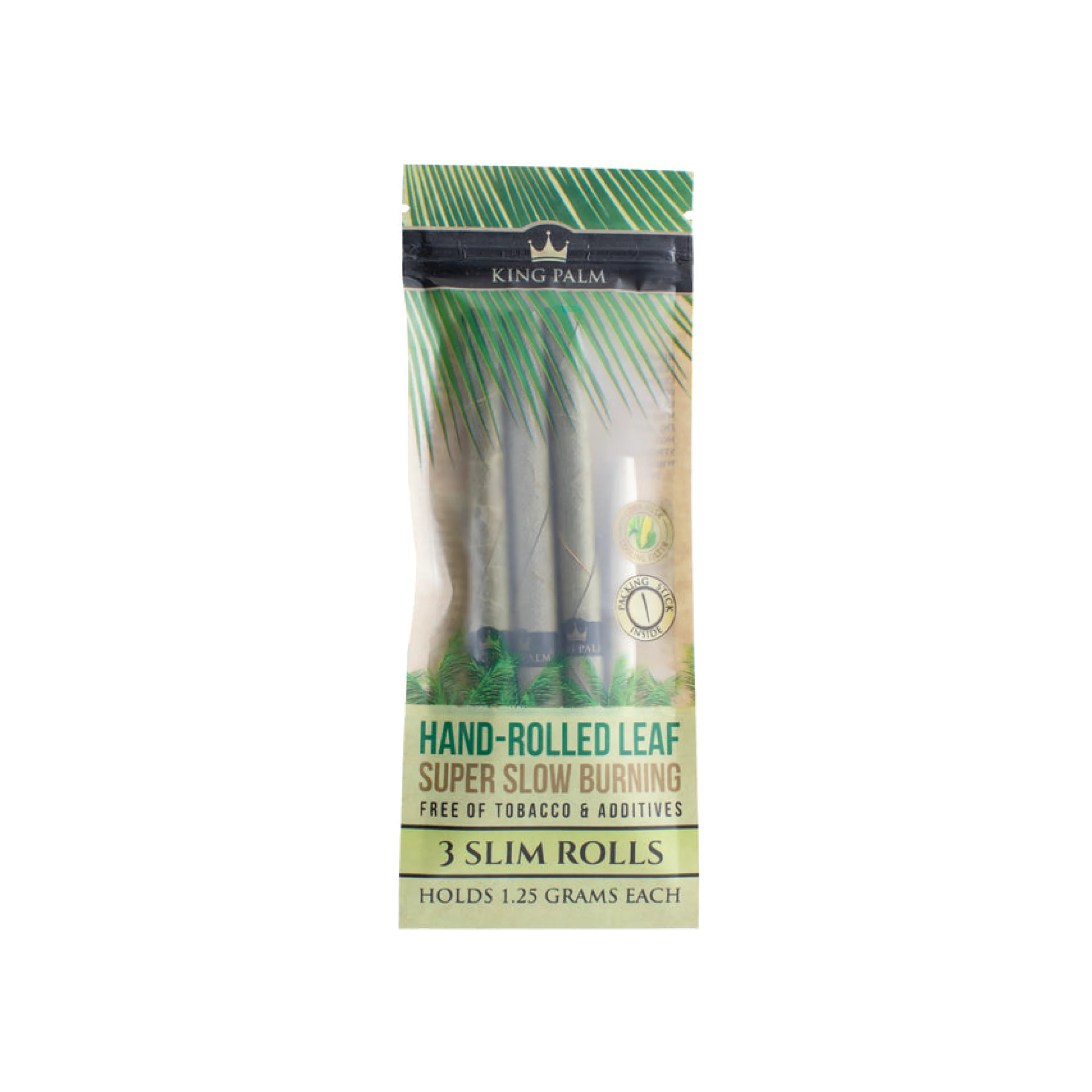 King Palm slim rolls are super slow-burning, allowing you to enjoy long, flavorful sessions without needing to relight frequently. Each roll holds up to 1.25 grams of product, providing ample space for a satisfying smoke. The leaves are seamlessly rolled to prevent fraying or leakage, delivering a smooth and consistent burn every time.