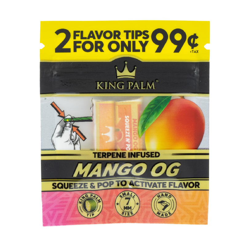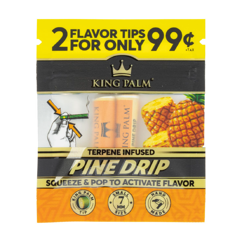Enhance every roll with King Palm Flavored Filter Tips 2-Pack, crafted to deliver smooth airflow and authentic plant-derived flavor. Available in Lemon Haze, Mango OG, and Pine Drip, these premium filter tips use natural terpenes and an innovative squeeze-and-pop system to elevate your smoking experience—without relying on flavored papers.