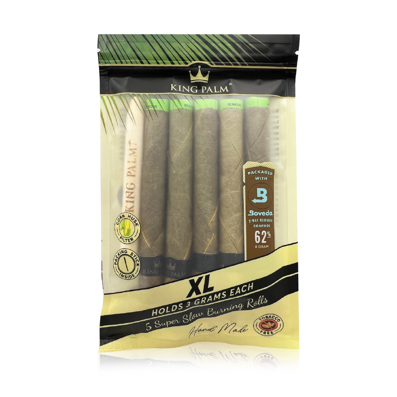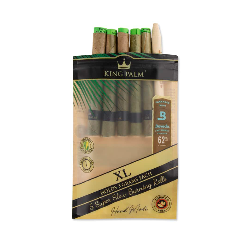 Elevate your smoking experience with King Palm XL 5 Pack Palm Leaf Rolls, crafted for smokers who appreciate pure, untainted flavors. Each pack contains five XL rolls, each designed to hold up to 3 grams of ground cannabis. Perfect for solo sessions or sharing with friends, these pre-rolled cones take the hassle out of rolling, letting you enjoy your smoke immediately.