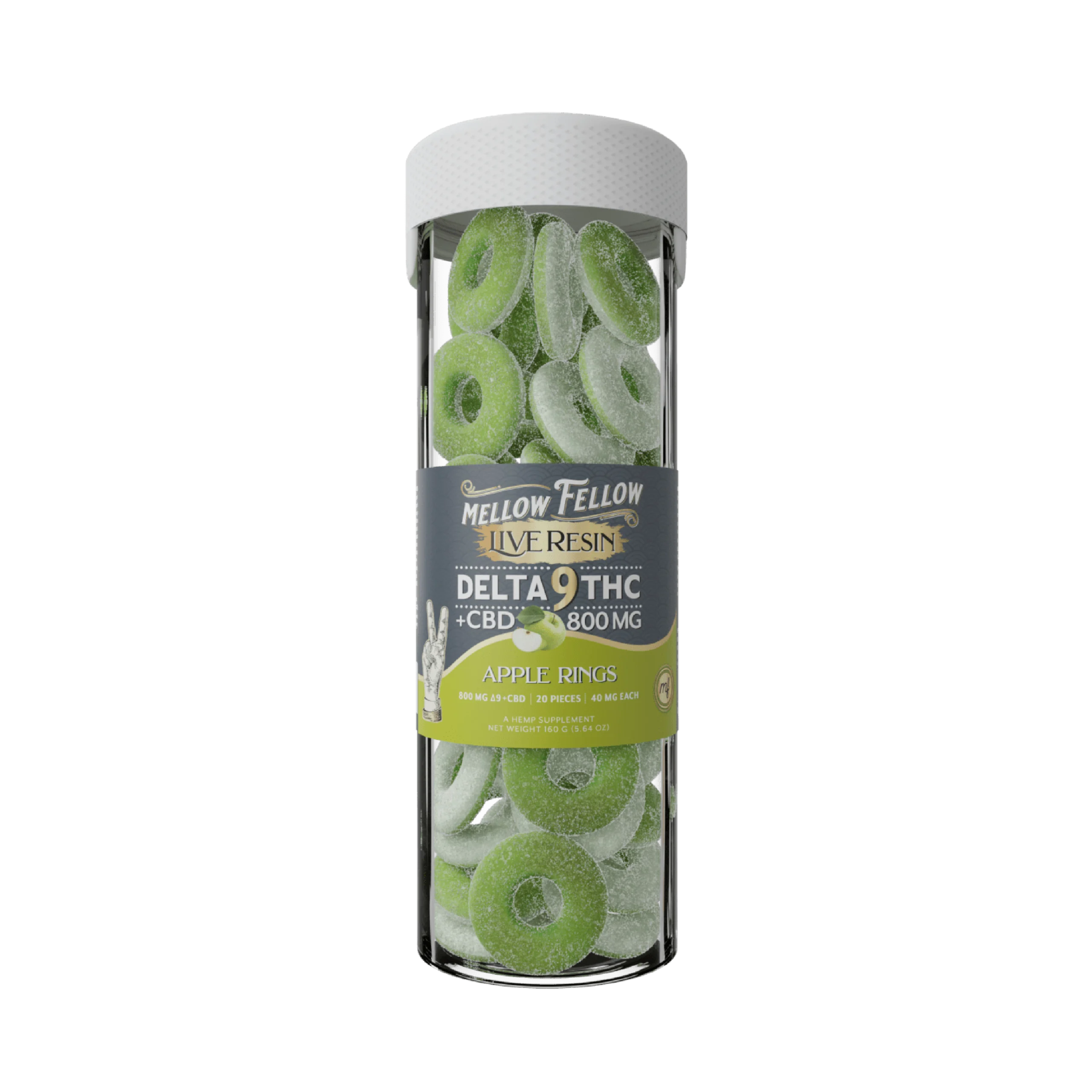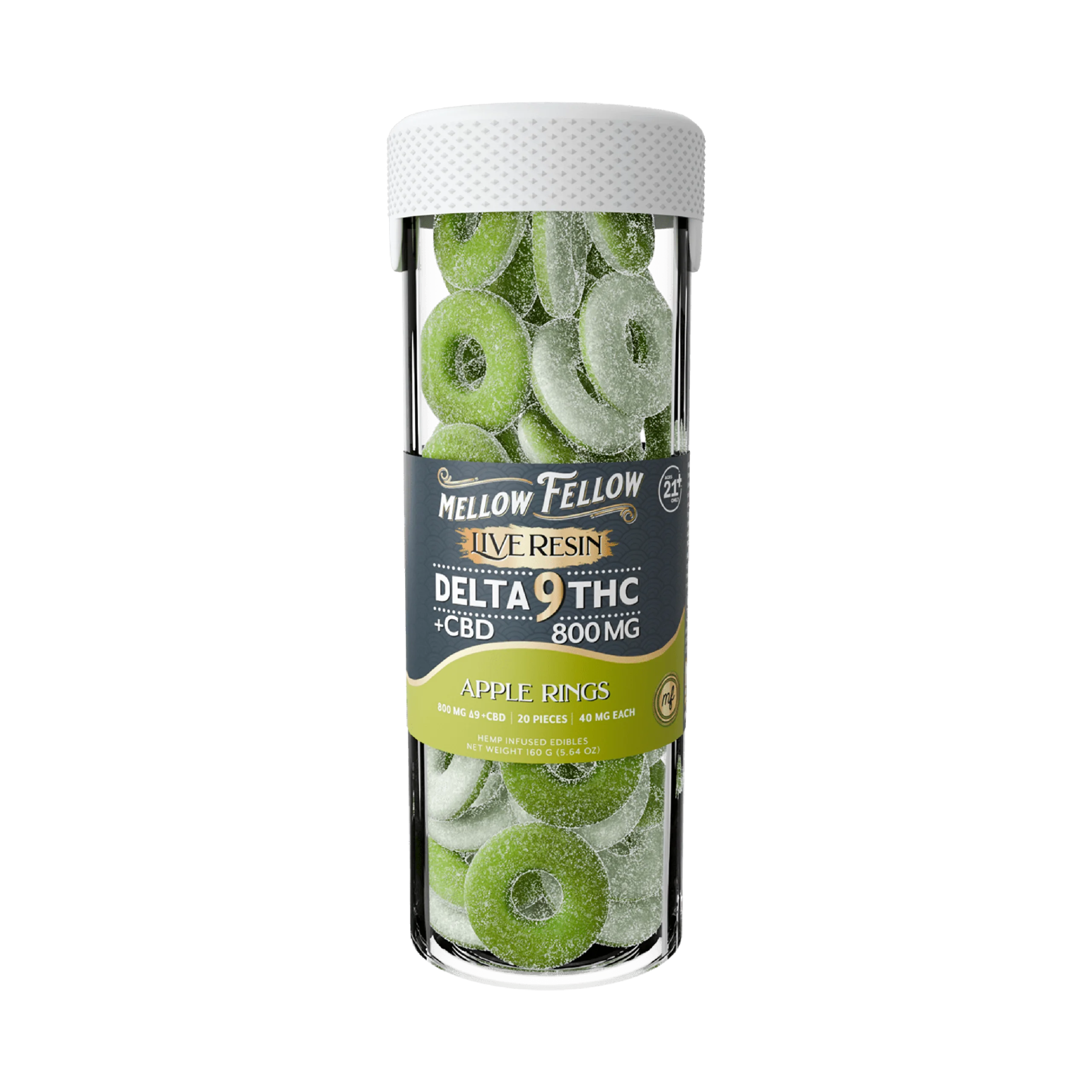 Mellow Fellow Delta-9 + CBD Live Resin Apple Rings deliver a perfectly balanced blend of flavor and potency. Crafted with hemp-derived Delta-9 and CBD, these gummies offer a smooth, uplifting experience enhanced by live resin for amplified flavor and effects. Each bite bursts with sweet and tart apple notes, making every ring both delicious and effective.