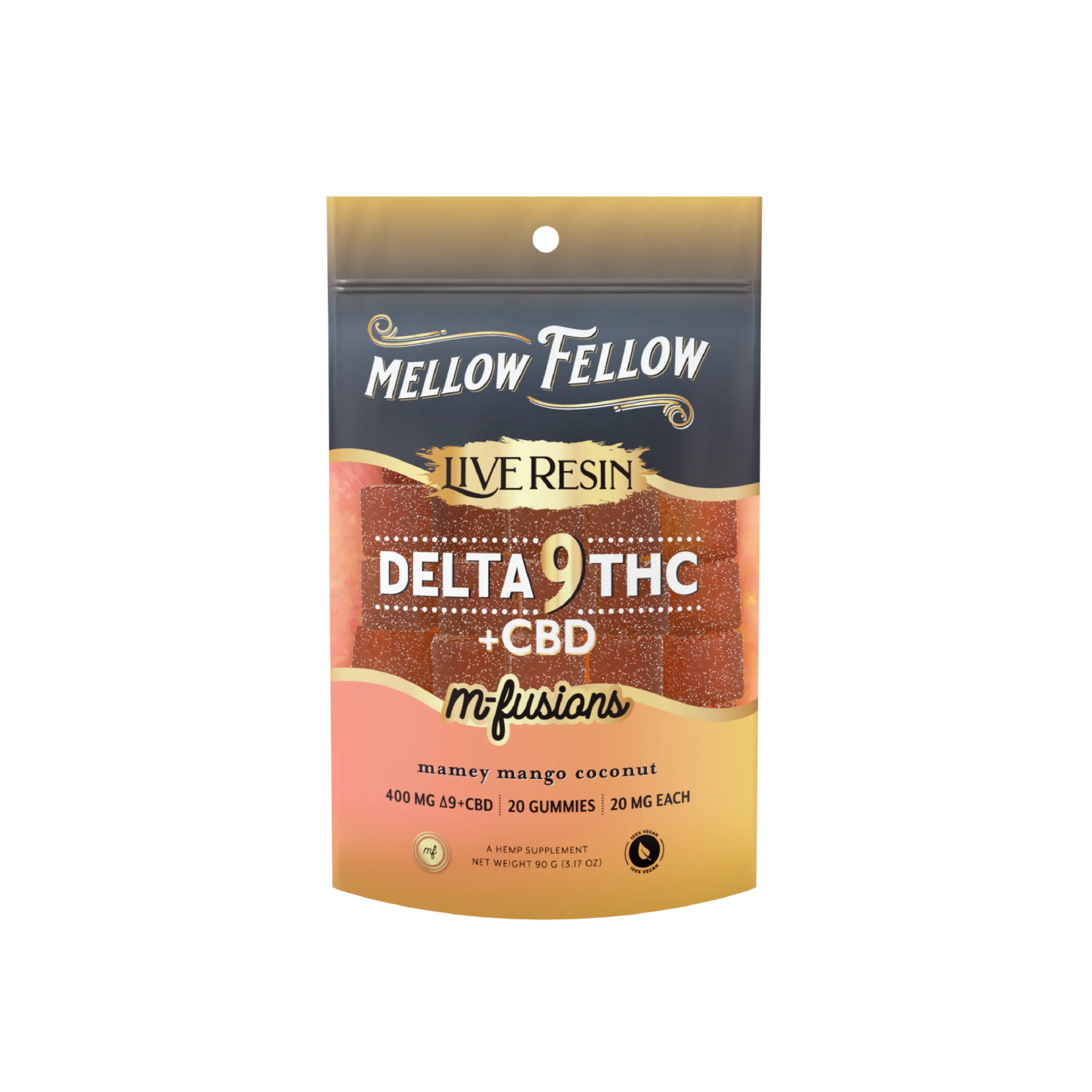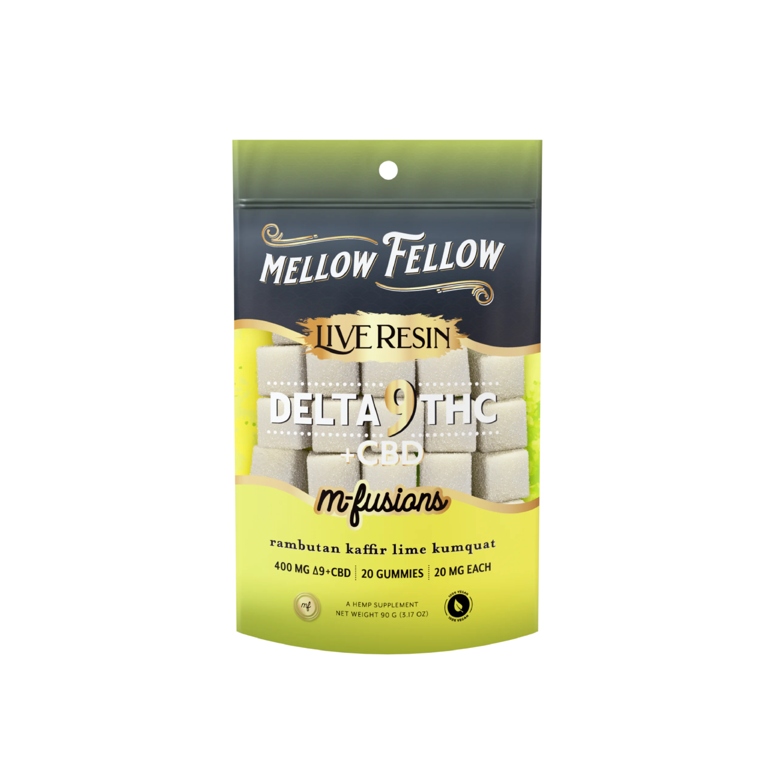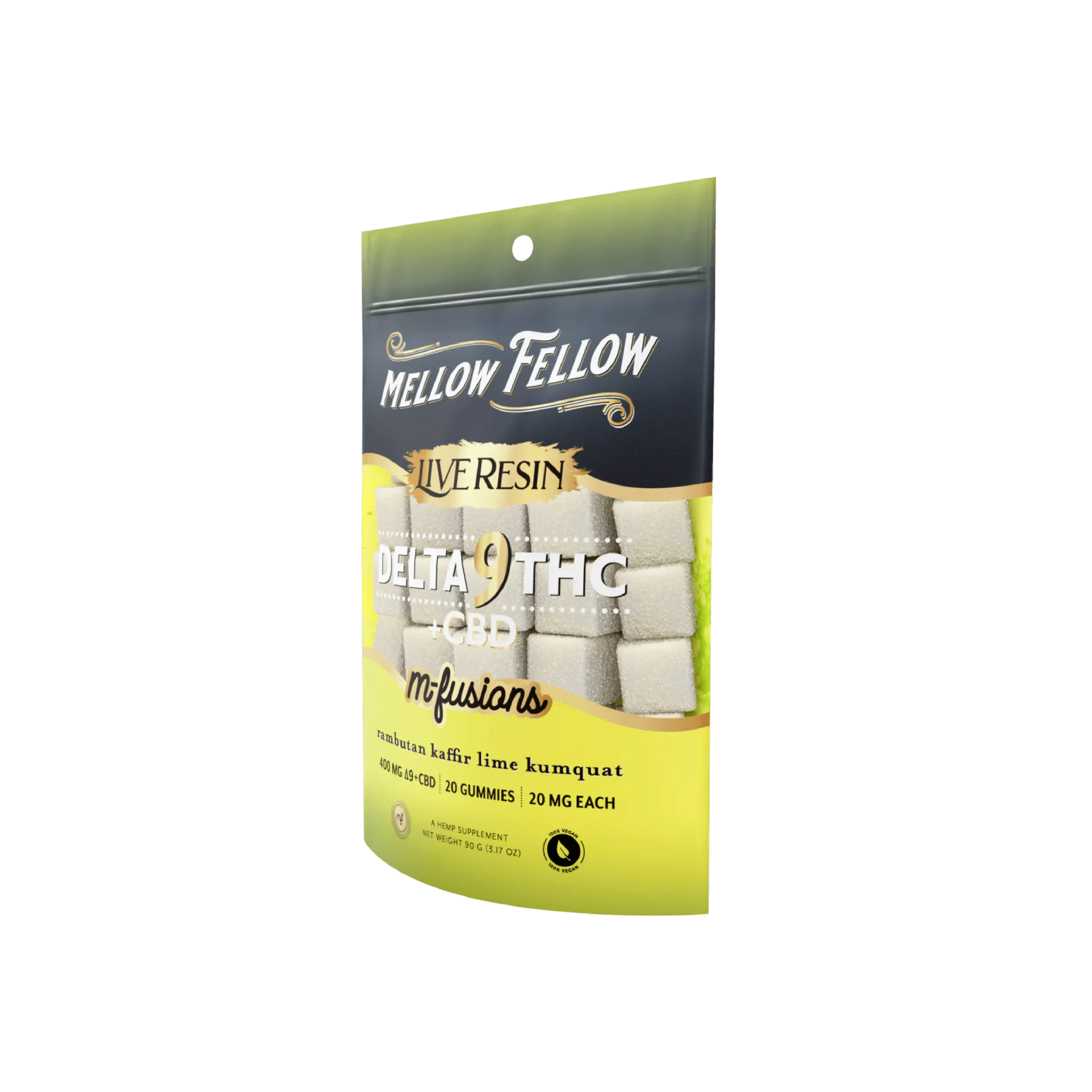 Experience a harmonious blend of citrus and sweetness with Mellow Fellow D9+CBD Live Resin Edibles in Yuzu Honeydew. Each gummy combines the refreshing zest of Yuzu with the natural sweetness of Honeydew melon, delivering a delightful and balanced flavor experience. Infused with a 50/50 ratio of Delta 9 THC and CBD, these live resin edibles provide a perfect balance of relaxation and relief with every bite.