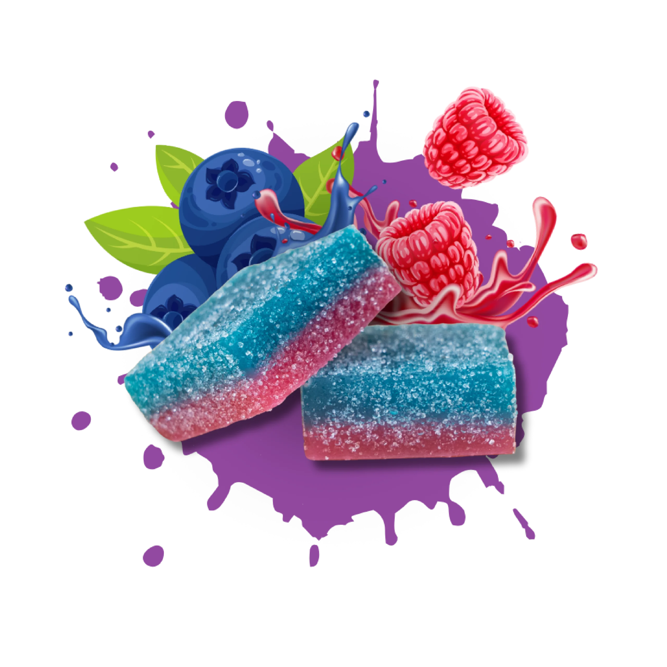 Double-layered Blue Razz flavor (one layer Blueberry, one layer Raspberry)