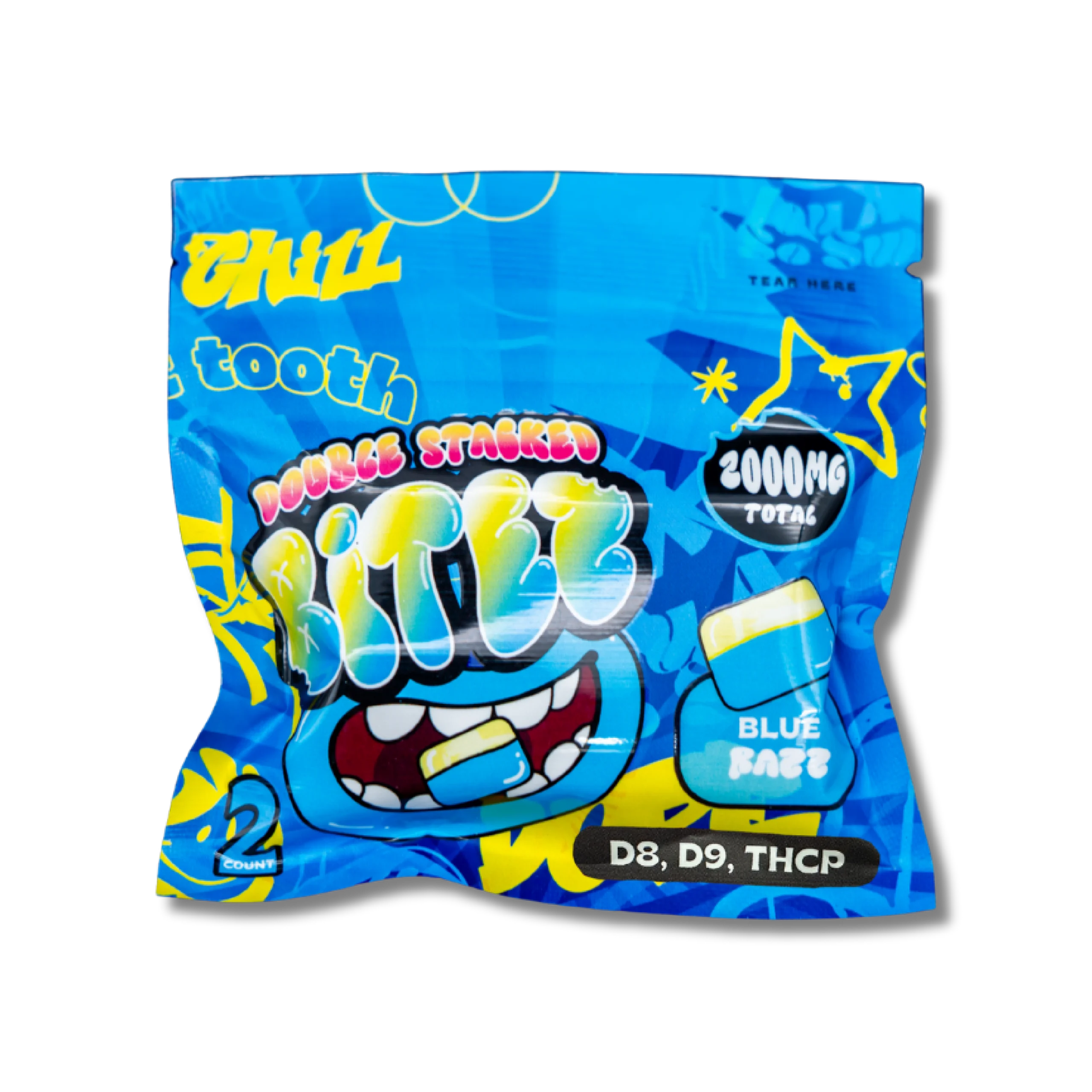 Experience the bold flavor combination of Blue Razz with Ocho Extracts Double Stacked Bitez gummies. Each gummy layers the rich taste of blueberries with the tangy zest of raspberries, creating a deliciously intense flavor experience. Infused with a potent mix of Delta-8, Delta-9, and THCP, each gummy delivers 1,000mg, with two gummies per pack totaling 2,000mg.