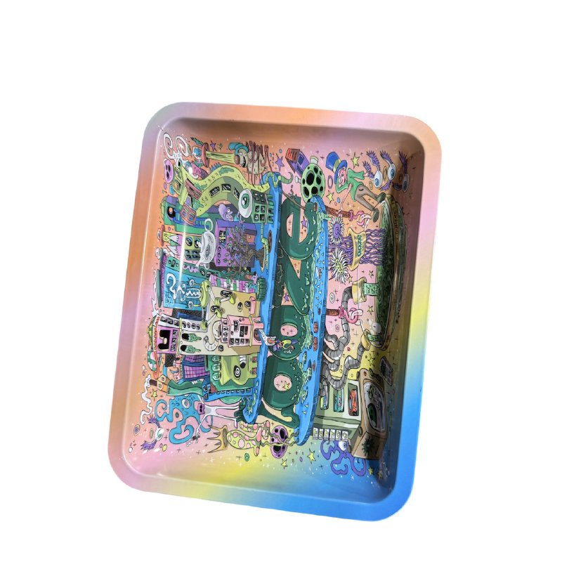 This rolling tray performs perfectly for grinding herbs, rolling up, and even use as an ashtray. Its unique and vibrant design also makes it a great conversation piece, adding personality to any setup. Pair it with your favorite rolling papers and strain, and you’re ready to roll with ease.