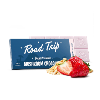 Embark on a celestial journey with Road Trip Desert Stardust Strawberry Crunch Mushroom Chocolate. This premium chocolate bar is infused with Road Trip’s proprietary mushroom blend, crafted to provide a unique, mind-expanding experience reminiscent of starlit desert nights. Each square delivers a carefully measured serving, making it easy to enjoy the full effects while savoring delicious strawberry crunch flavor.