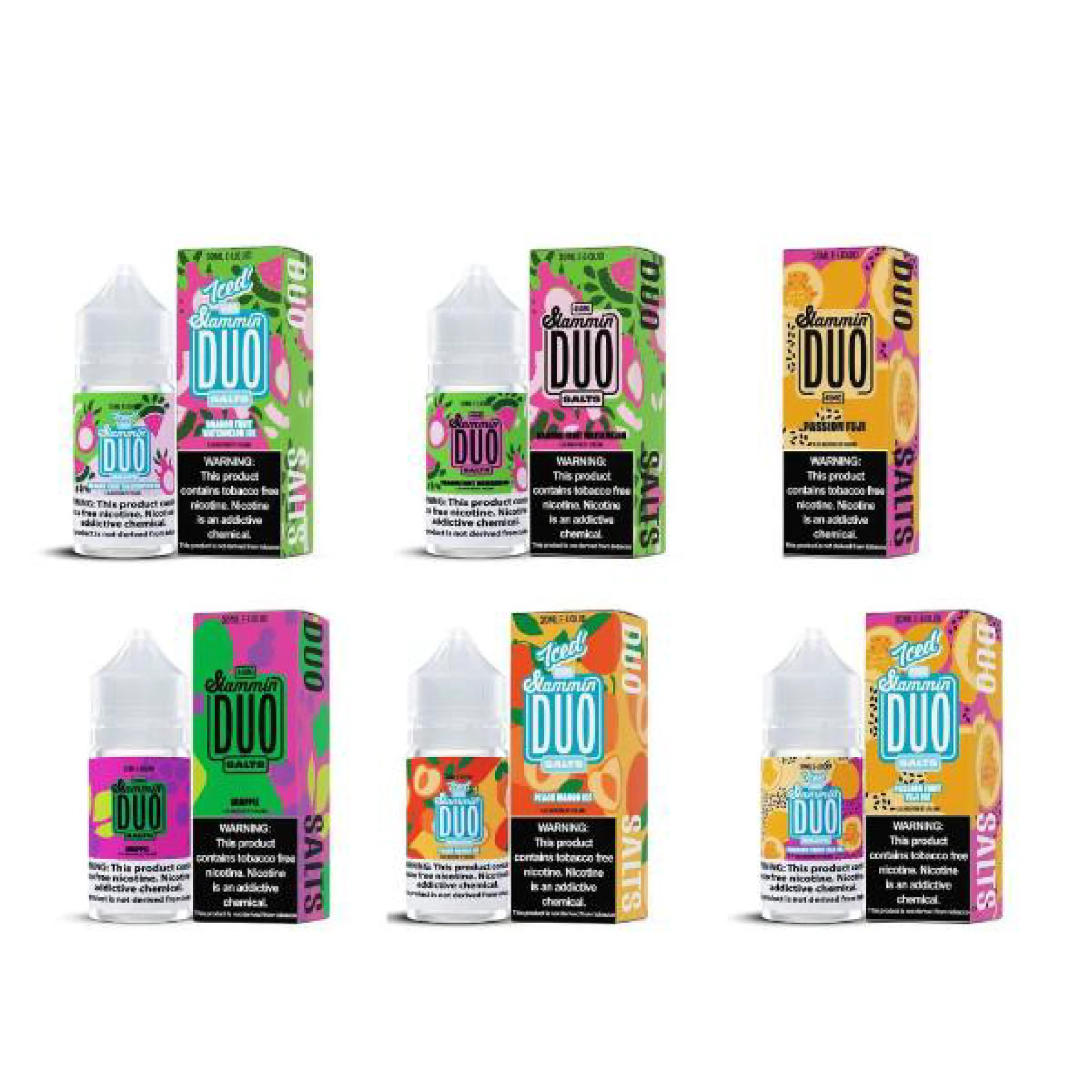 Slammin Duo Series E-Liquid 30mL (Salt Nic) delivers bold flavors and smooth nicotine satisfaction for vapers seeking an intense experience. Designed for low-wattage pod systems, this premium salt nic e-liquid ensures a consistent, enjoyable vape with every puff.