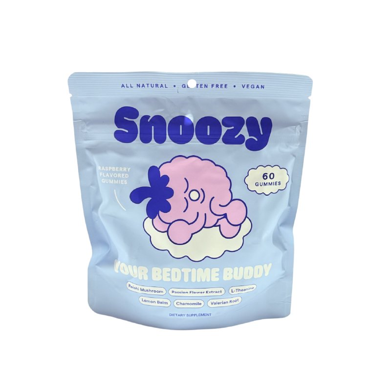 Snoozy Bedtime Buddy Sleep Gummies are expertly crafted to help you fall asleep naturally and wake up refreshed. Each gummy features a powerful botanical and adaptogenic mushroom blend to calm the mind and body, without THC or melatonin. Perfect for nightly use, these vegan, gluten-free gummies provide gentle, non-habit-forming sleep support with a delicious natural raspberry flavor.