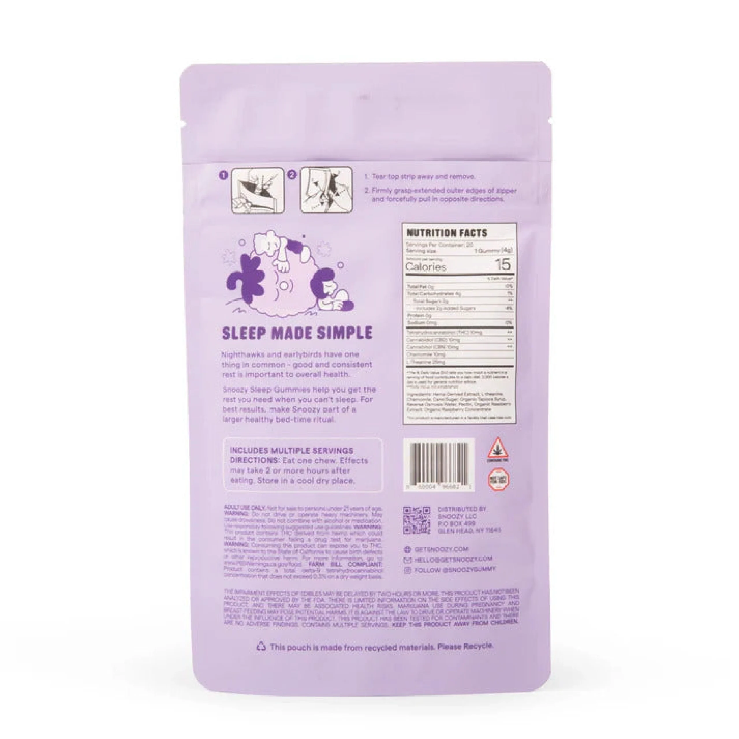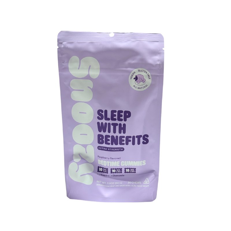 Snoozy Sleep With Benefits Extra Strength Delta 9 Gummies are expertly formulated to support restful, restorative sleep. Each gummy contains a 65mg active blend of 10mg Delta 9 THC, 10mg CBD, 10mg CBN, 10mg Chamomile, and 25mg L-Theanine, all derived from organic, all-natural ingredients. This unique combination helps users relax, fall asleep faster, and stay asleep longer, making it ideal for those with high-stress lifestyles, athletes, or anyone struggling with sleep.