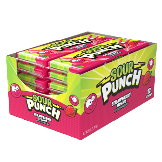 Turn up the tang with Sour Punch Straws Strawberry, the iconic chewy candy bursting with sweet-and-sour strawberry flavor. Each straw is coated in signature sour sugar, delivering a bold, lip-smacking punch that keeps candy lovers coming back for more.