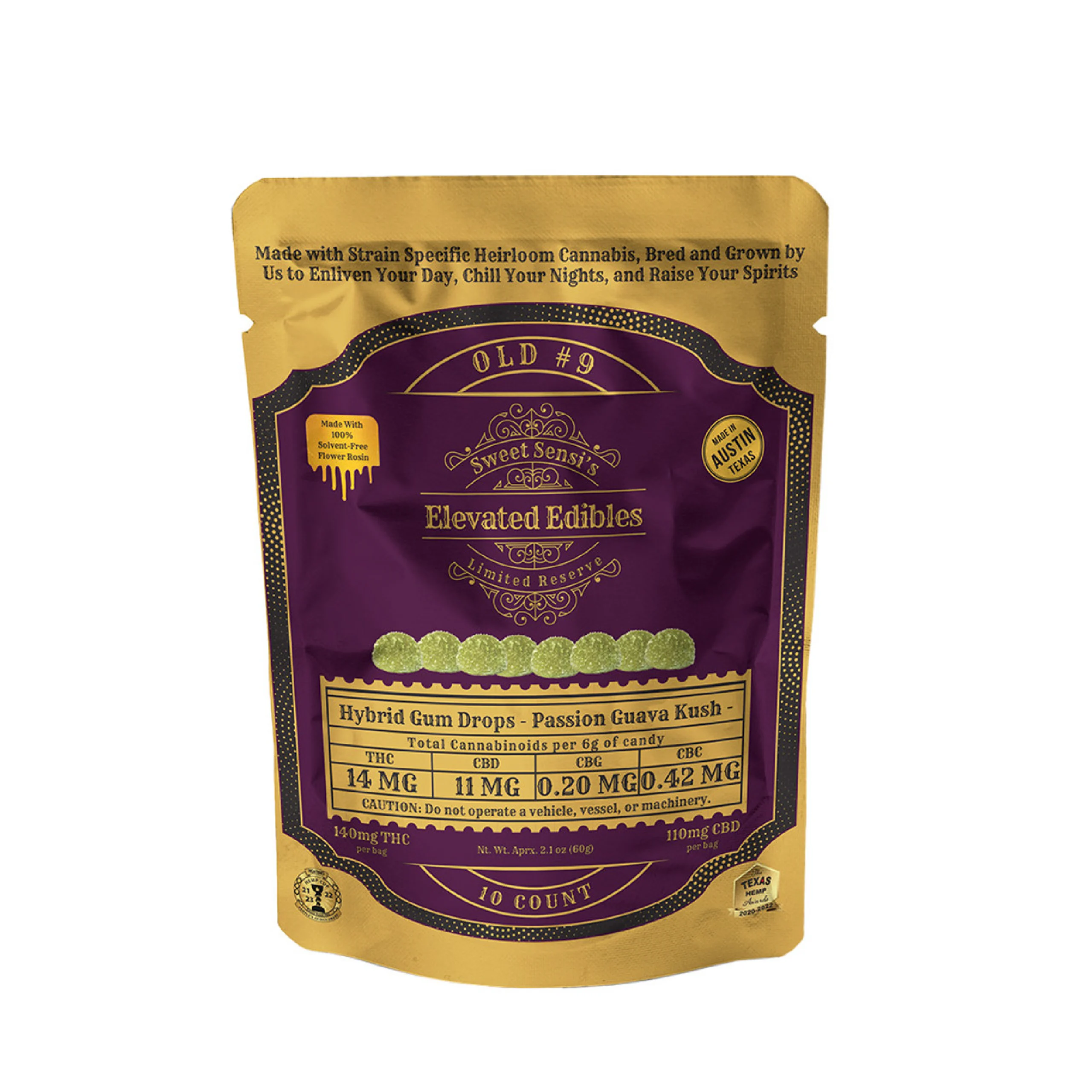 • Sweet Sensi Elevated Edibles – 10ct | Passion Guava Kush | 140mg THC + 110mg CBD