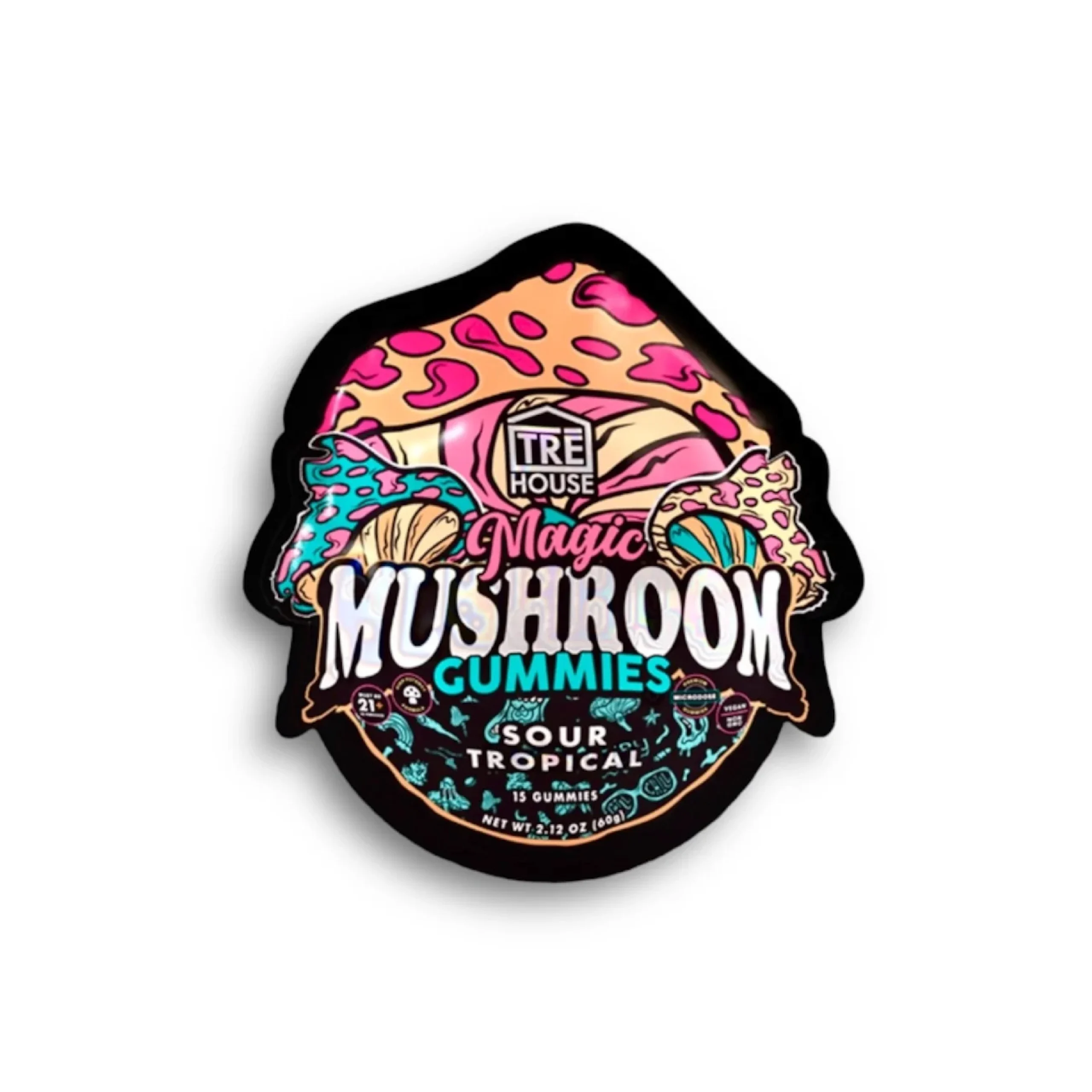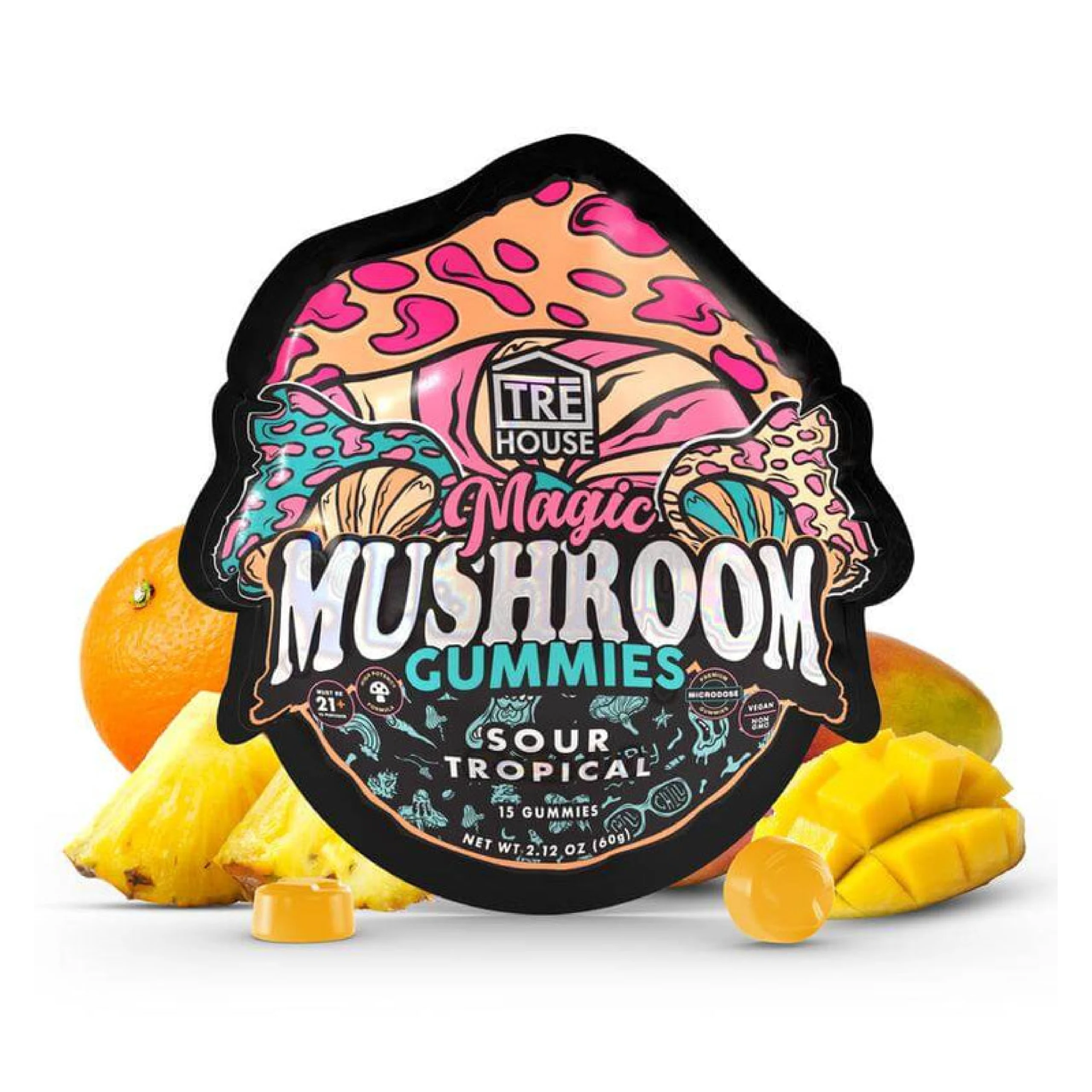 Experience the Tre House Magic Mushroom Gummies Sour Tropical, a delicious and convenient way to enjoy the benefits of nootropic mushrooms. Each pack contains 15 vegan gummies, with a proprietary 22.5mg mushroom blend per serving, designed to support mental clarity, focus, and overall wellness. Crafted with natural ingredients like tapioca syrup, cane sugar, and pectin, these gummies offer a flavorful sour tropical taste while remaining free from artificial additives.