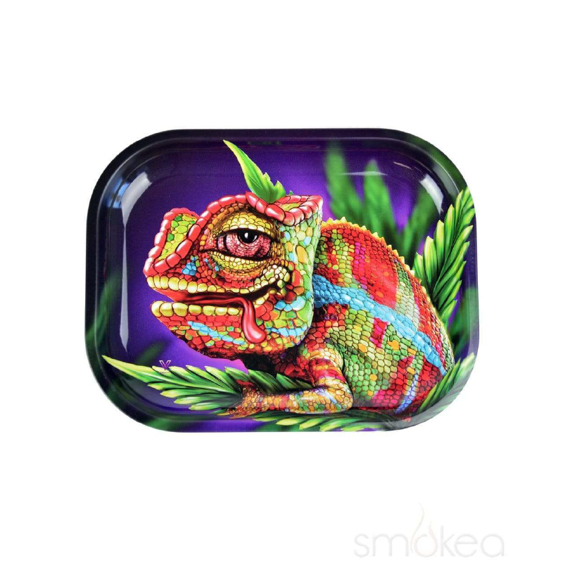 The V Syndicate Cloud 9 Chameleon Metal Rolling Tray is a lightweight and durable rolling tray designed for everyday use and easy portability. Made from sturdy printed metal, this tray features a full-color Cloud 9 Chameleon design that adds personality without compromising functionality.